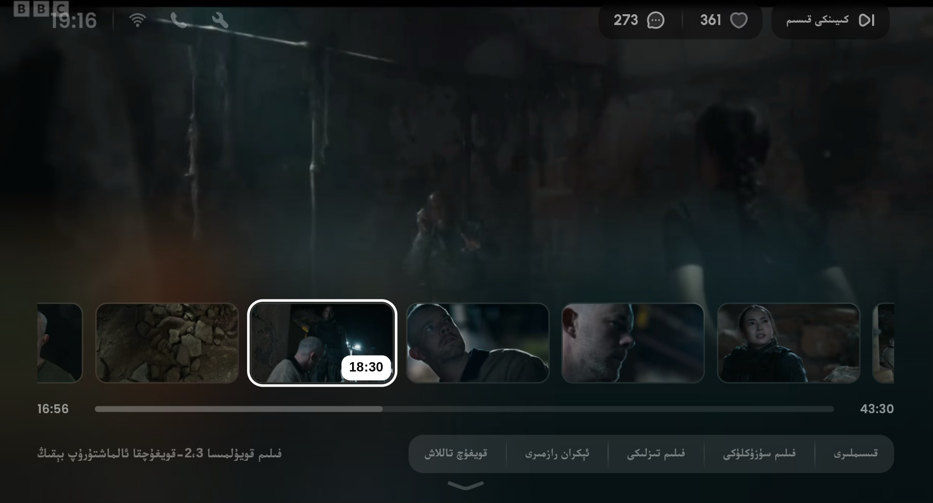 نورمال ئېكران كۆرۈنمىسىدە ئوڭ تەرەپ ئۈستىدە فىلىمگە چۈشكەن يۈرەك سانى، ئىنكاس سانى كۆرۈنۈپ تۇرىدۇ. كىنونى تېز ئۆتكۈزسىڭىز كىنو بۆلەكلىرىنى كۆرەلەيسىز، ھەر بىر بۆلەكتىكى فىلىم كۆرۈنۈشى چىقىپ تۇرىدۇ.