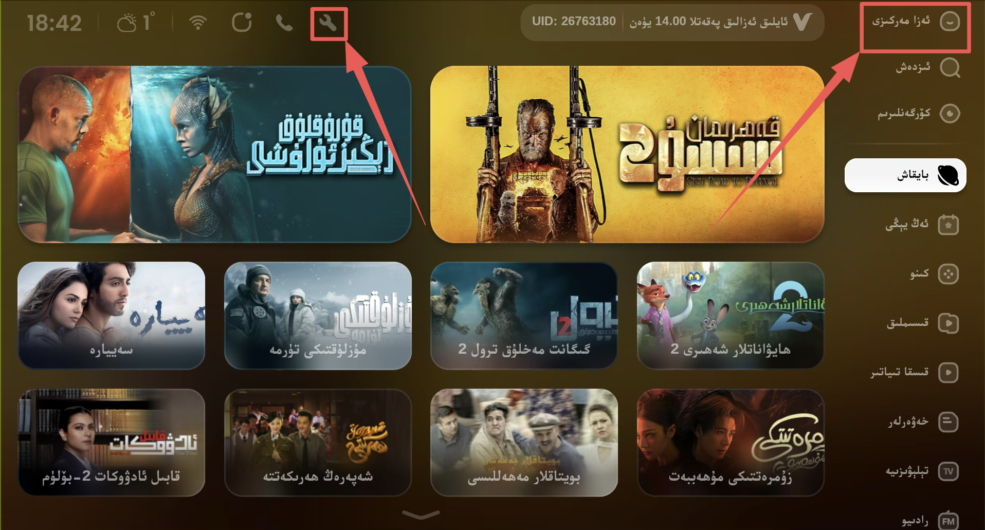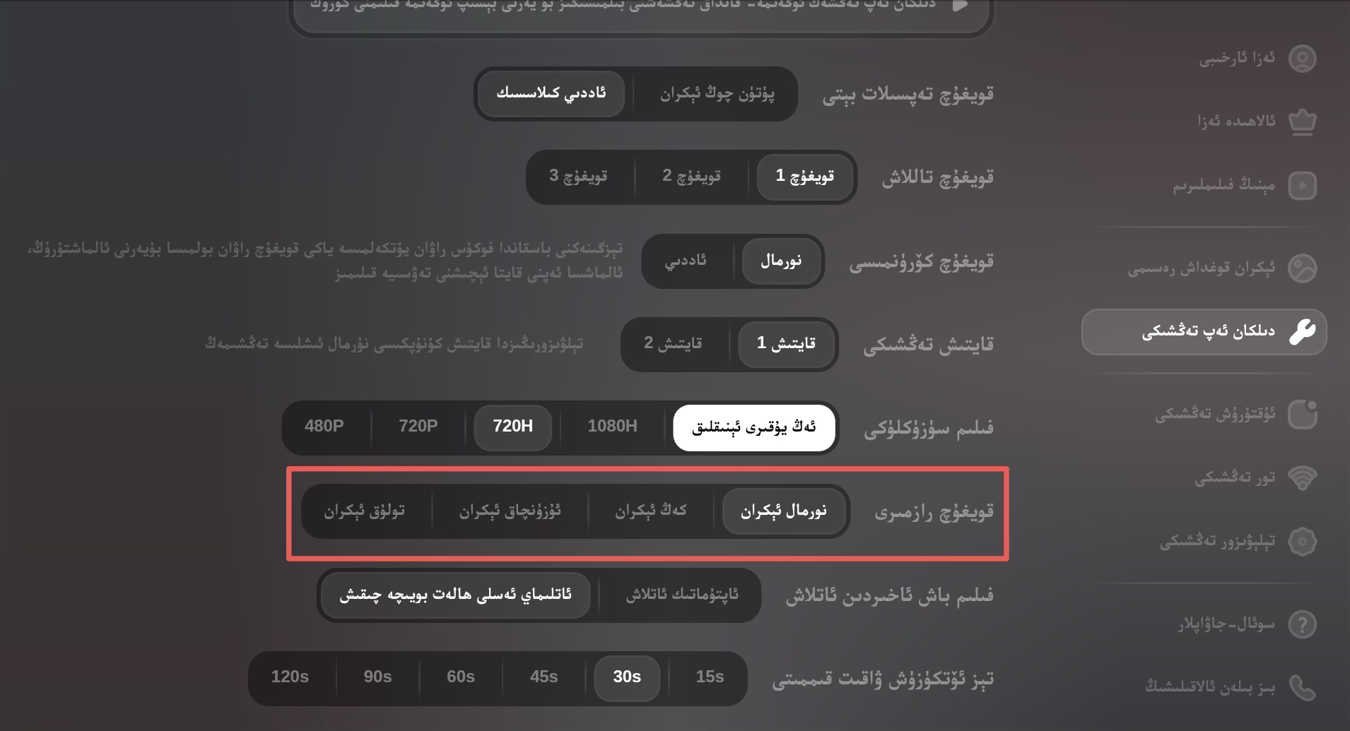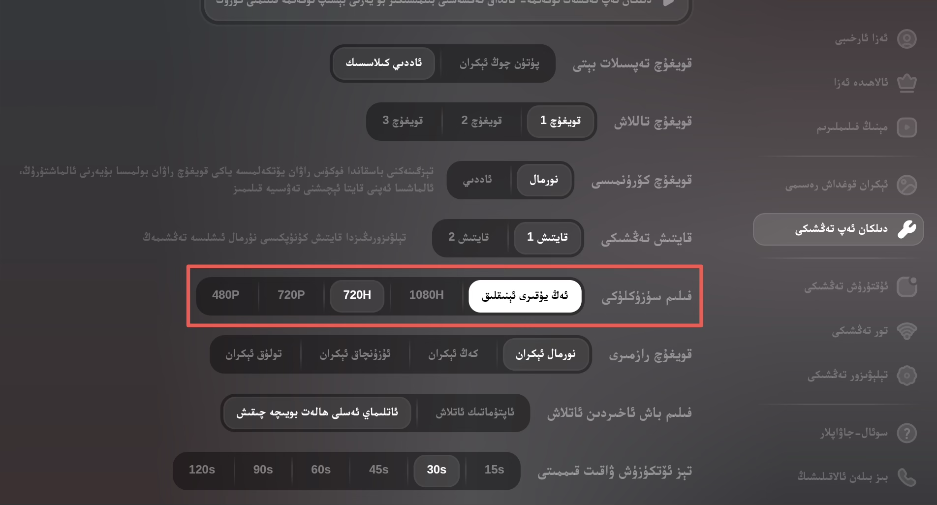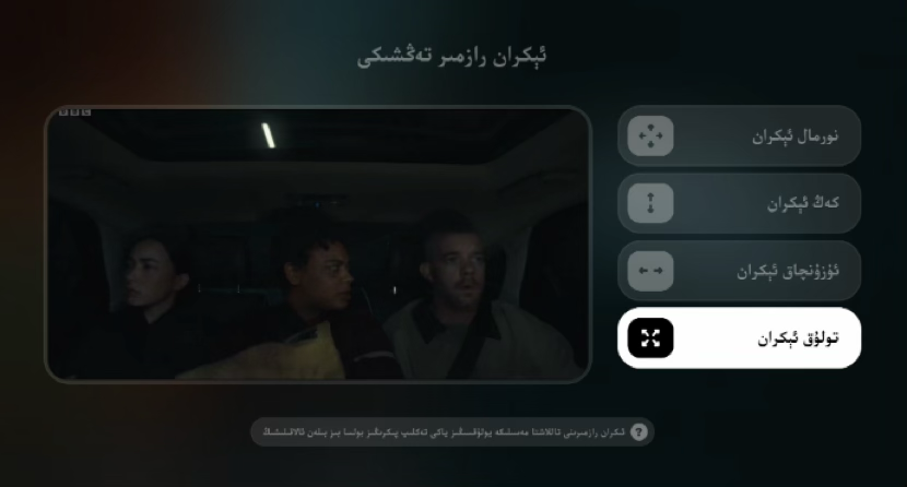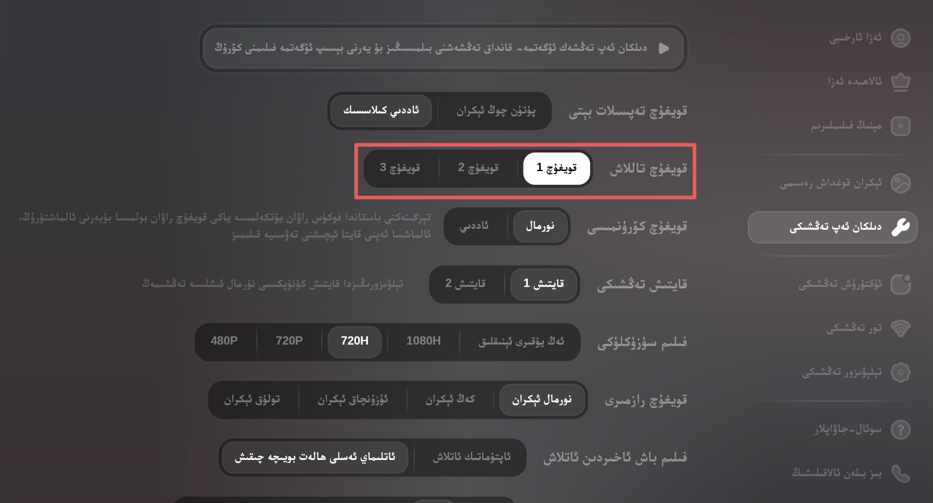 بىلدۈرگۈ: تېلېۋىزورلار سەپلىمىسىنىڭ يۇقىرى-تۆۋەن بولۇشى سەۋەبلىك، بەزى تۆۋەن سەپلىمىدىكى تېلېۋىزورلاردا كىنو يۇقىرى سۈزۈكلۈككە تەڭشەلسە كىنو راۋان چىقمايدىغان ئەھۋال كۆرۈلۈشى مۇمكىن، تېلېۋىزورىڭىزدا كىنو سۈزۈكلۈكىنى يۇقىرى تەڭشىسىڭىز كىنو راۋان چىقمىسا، سۈزۈكلۈكىنى تۆۋەن تەڭشەپ سىناپ بېقىڭ.