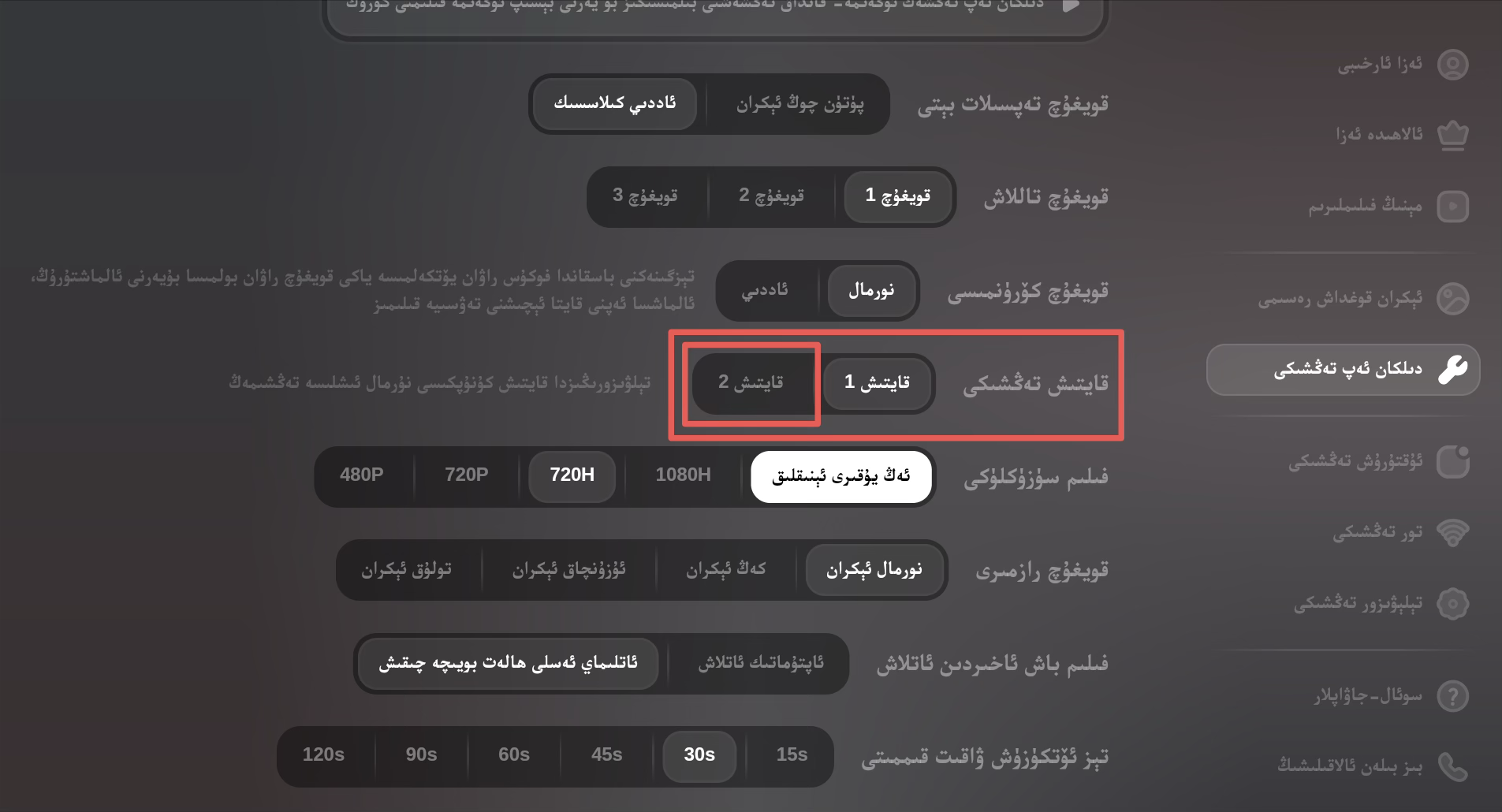ئېكران رازمىرىنى تەڭشىمەكچى بولسىڭىز «قويغۇچ رازمىرى»دىن ئېھتىياجىڭىز بويىچە تەڭشىۋالسىڭىز بولىدۇ.