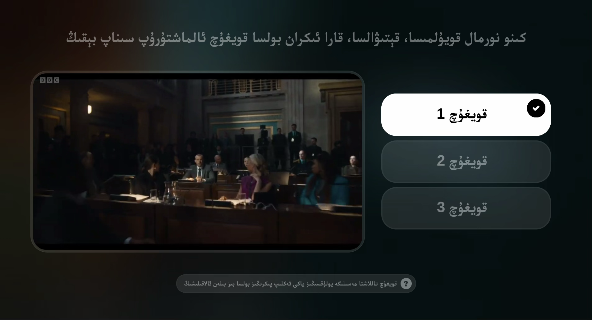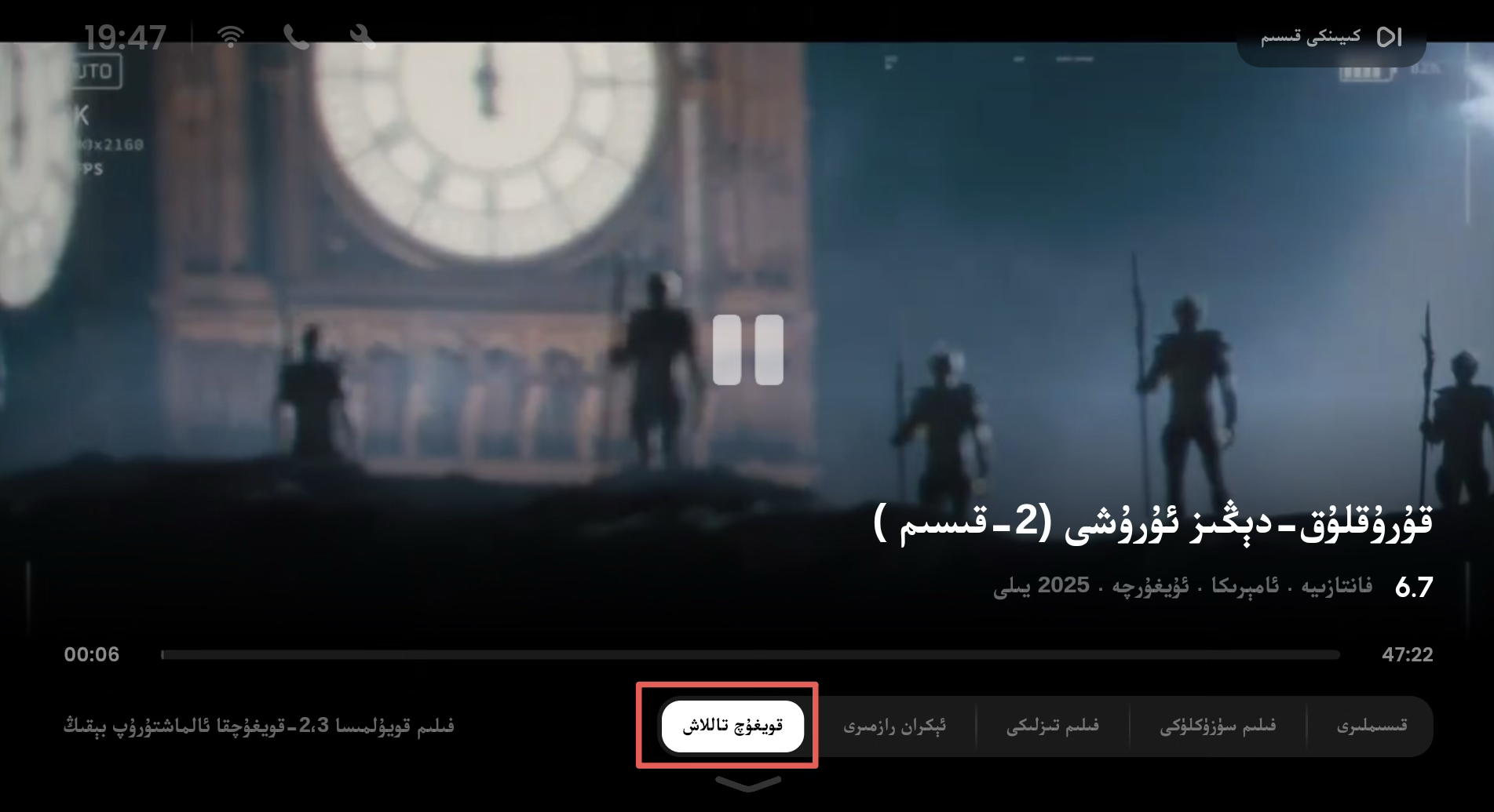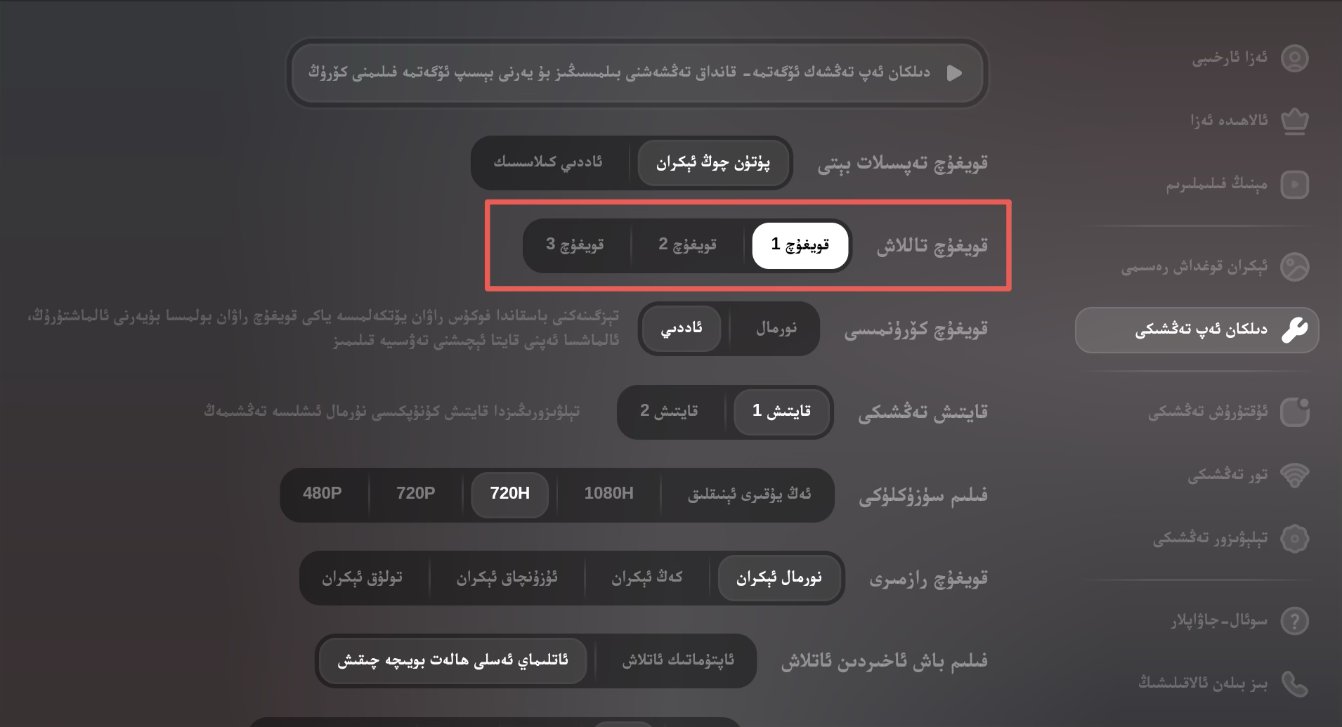 كىنو قويۇلغاندا تىزگىنەكتىكى ئاستى كونۇپكىسىنى باسسىڭىز چىققان تەڭشەكلەر قاتارىدىن «قويغۇچ تاللاش»نى بېسىپ، ئۈچ قويغۇچنى ئالماشتۇرۇپ سىناپ بېقىڭ.